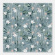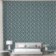 Motif de fleurs zen blanc avec arrière - plan bleu-gris. Idéal pour une chambre bébé ou une chambre où l'on aime apporter une sensation de calme.