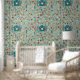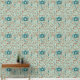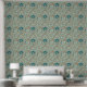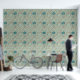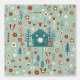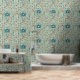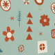 Un motif boisé inspiré de Scandi avec des créatures forestières et une horloge coucou sur un arrière - plan vert sage. Art original de Nic Squirrell.