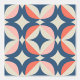 Ce design moderne du milieu du siècle présente un motif géométrique bleu et corallien.