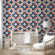 Papier Peint Motif géométrique bleu et corail