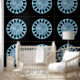 Le papier peint Motif géométrique moderne Blue Black Circle présente un design géométrique moderne qui ajoutera une note audacieuse et sophistiquée à tout décor.
