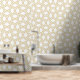 Cet élégant design présente une belle motif géométrique Art Déco dorée sur un arrière - plan blanc.