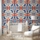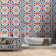 Papier Peint Motif Peel Stick bleu orange géométrique Carreaux