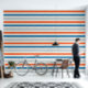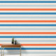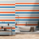 Papier Peint Motif rayé vibrant Bleu et orange Nursery