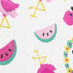 Papier Peint Motif tropical, Flamants roses, pastèques, Fleurs