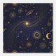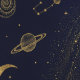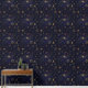 Unveil the magic of the cosmos with this stunning mystical wallpaper design. This dramatic pattern features intricate golden line work depicting celestial bodies, including smiling suns, crescent moons, classical star constellations, and majestic swirling galaxies. Set against a deep, dark navy blue background, the golden detailing and central sparkling band of stars create an elegant, antique, and slightly occult aesthetic. Ideal for a feature wall in a moody bedroom, a unique office, a creative studio, or a themed powder room, this design adds a sophisticated, mystical flair to any interior space. Search ID1239 to see all the products in this design set. Note: design adapted from generative content.