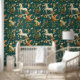 Papier Peint Mythique Animaux Forêt Créatures Turquoise