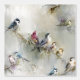 Oiseaux peints à l'huile vintage sur une branche .. teintes muettes de divers oiseaux, faiblement peintes en huiles