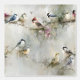 Oiseaux peints à l'huile vintage sur une branche .. teintes muettes de divers oiseaux, faiblement peintes en huiles