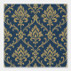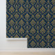 Papier Peint Or Baroque Floral bleu foncé