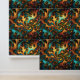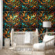 Papier Peint Or Turquoise Et Orange Abstrait Art,