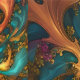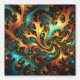 Dans Un Design D'Art Abstrait Sont Turquoises D'Or Et Des Flammes Oranges.