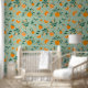 Accentuez vos murs avec ce papier peint à motifs d'agrumes riche. Il présente des oranges vibrantes et des fleurs d'oranges avec un feuillage feuillu.