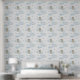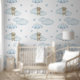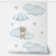 Papier Peint Ours Bleu Parapluie Nuages Coeurs Baby Boy Nursery