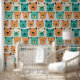Ce joli papier peint est orné d'un motif fait de têtes d'ours en peluche.