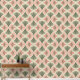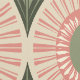 Un mélange audacieux et ensoleillé de feuilles de palmiers et de soleils de style rétro, rose, vert et orange sur un arrière - plan crème, ludique, lumineux et tropical.