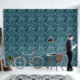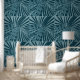 Papier Peint palme & feuille tropicale abstrait en gris vert bl