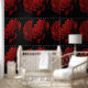 Un papel mural dramático, con rosas rojas, que dará carácter a tus espacios. Creado con mucho cariño para ti a partir de mi cuadro Rojo y Negro.
