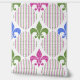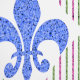 Blanc avec faux teint bleu violet, magenta et parties scintillant verte Mardi Gras fleur de lis motif par Holiday Hearts Designs (droits réservés).
