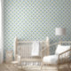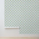 Wallpaper featuring a printed watercolor style floral medallion pattern in soft blue and green on a light ground, arranged in a gentle diamond layout. Peel and stick for easy install and clean removal. Apartment rental friendly for temporary updates, accent walls, seasonal refreshes, and quick makeovers. A tailored, airy grandmillennial wall treatment for bedrooms, dining rooms, and powder rooms. Suitable for permanent or temporary use.