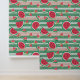 Ce papier peint présente un motif d'été fait de pastèques et de rayures vertes.
