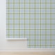 Un papier peint peel and stick avec un plaid simple mais élégant en bleu danois pastel et vert sauge.