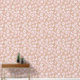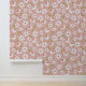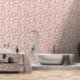 Papier Peint Peach Plush Rose Vert Fleurs blanches Motif d'art