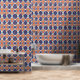 Bâton amovible Peel Artdeco Carreaux Motif Bleu Orange Fond d'écran géométrique. Super projet do-it-yourself facile pour les locataires propriétaires. Créez un look personnalisé pour votre maison condo appartement dortoir ou affaires. Décorez le mobilier aux murs. Disponible en vinyle texturé et lisse. Tailles 2'x4' 2'x8' 2x10' 2'x12'' et 2'x1'' swatch.