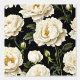 Un beau motif extensible sans couture de fleurs de pivoine blanc cassé avec des étamines d'or moutarde en pleine floraison contre un arrière - plan noir qui a de petits feuilles verts et des bourgeons de pivoine autour de la fleur. Ce design audacieux et élégant, inspiré de la campagne, a une sensation intemporelle et élégante été / printemps. Transformez n'importe quelle chambre en un chef-d'oeuvre majestueux et majestueux avec ce design adapté à n'importe quel grand espace, qu'il s'agisse d'un salon, d'une salle de bain ou d'une chambre. Idéal pour les manoirs de campagne, les chalets anglais et français, les maisons et les environnements d'affaires.