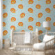 Papier Peint Petits Lions mignons avec empreintes sur bleu clai