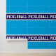 Ce design sportif présente du texte PICKLEBALL athlétique à l'intérieur d'une large bande marine horizontale en gras surlignée de bandes blanches contre un arrière - plan bleu azur. Les couleurs et le texte de ce design peuvent être personnalisés.