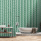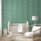 Un papier peint à rayures blanches et vertes de pinède dans un espace homogène alternant rayures. Classique et sportif.