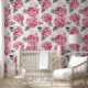 Papier Peint Pink Hydrangea Watercolor Botanical Floral Pattern