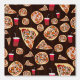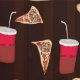 Pizza avec saucisse et pepperoni et soda à la paille dans un motif répétitif.