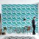 Idéal pour n'importe quel établissement de plage ; restaurant côtier ; hôtels de bord de mer ; lodges ; resorts et chalets, ce bleu turquoise et pâle mélangé à une fresque murale blanche présente des vagues océaniques ondoyantes de style japonais. Apportez la plage à l'intérieur, avec cette motif moderne, contemporaine et élégante sans couture qui est facile à peler et coller à la fois aux murs lisses et texturés.