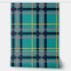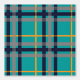 Une base turquoise riche est sillonnée de bandes de bleu marine profond, gris solide et orange vif dans ce plaid qui combine des couleurs branchées et des contrastes avec une motif classique et cosy.