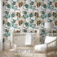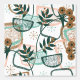 Papier Peint Plantes et pots Aqua Beige Style mi-siècle