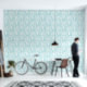 Des plumes claires, aérées, fantaisistes et minutieusement détaillées flottent sur un arrière - plan bleu bébé doux. Une atmosphère calme et relaxante. Idéal pour un nouveau décor de chambre ou de murs pour bébé.