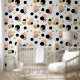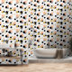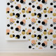Ce fond d'écran amusant présente des pois en pêche, or, noir et rayures. L'accent parfait ajouté à votre décor maison.