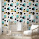 Ce fond d'écran amusant présente des pois en bleu turquoise, or, noir et rayures. L'ajout parfait à votre décor maison.