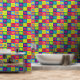 Pop Art Kiss Lips Colorful Retro Motif Wallpaper. Gros carrés audacieux chacun avec une marque de baiser colorée à l'intérieur.