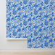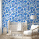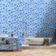 Papier Peint Preppy Palm Beach Bleu et Fleurs blanches