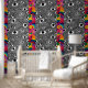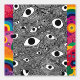 Transform your space into a visual experience with this psychedelic eye pattern wallpaper, blending hypnotic black and white waves with bursts of vibrant rainbow art on the sides.