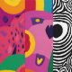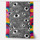 The combination of optical illusion patterns and colorful psychedelic borders creates a one-of-a-kind statement piece that’s both modern and retro.