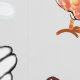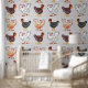 Quatre poules heureuses avec des oeufs font une cuisine joyeuse papier peint design