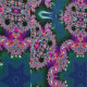 Cette image est une oeuvre fractale kaléidoscopique vibrante qui déborde de motifs complexes et de motifs tourbillonnants. Au centre, une forme étoilée bleue profonde rayonne vers l'extérieur, entourée de tourbillons aux teintes vives rose, violet et orange. Les boucles et les courbes complexes créent une symétrie fascinante, tandis que les touches de vert et de turquoise ajoutent de la profondeur et du contraste. L'oeuvre évoque un sentiment de complexité infinie et d'émerveillement cosmique, mêlant éléments de géométrie et flux organique dans un design hypnotique et insolite. Parfait pour ceux qui sont attirés par la beauté de l'art mathématique et de l'expression abstraite.