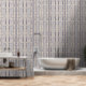 vertical stripes with stylized lotus, papyrus floral, leaves, and geometric shapes motifs evoke a sense of natural symmetry and sophistication.
