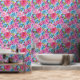 Un motif sans soudure de style préppy avec des tons rose et bleu pastel, des feuilles verts frais sur un arrière - plan bleu subtil. Le design allie élégance florale et esthétique contemporaine et épurée