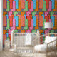 Papier peint à thème rétro, vintage, mêlant harmonieusement les éléments qui créent une atmosphère nostalgique et ludique.