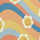 Papier Peint Retro Arc-en-ciel Sourire Fleurs